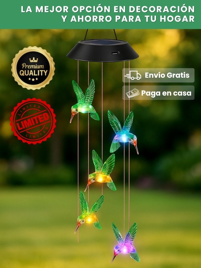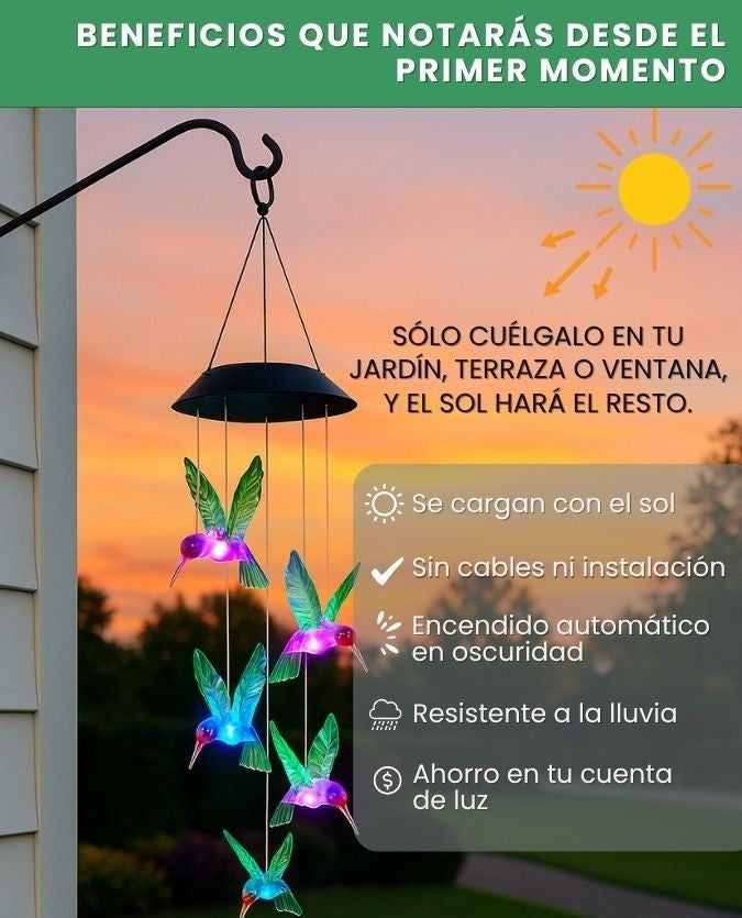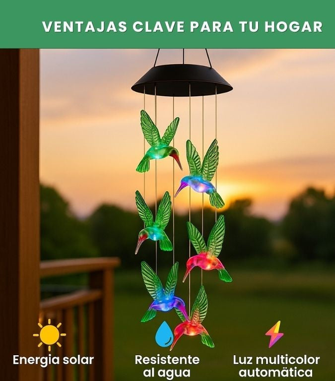 ● 1 Colgante Solar con 6 figuras luminosas de Colibrí