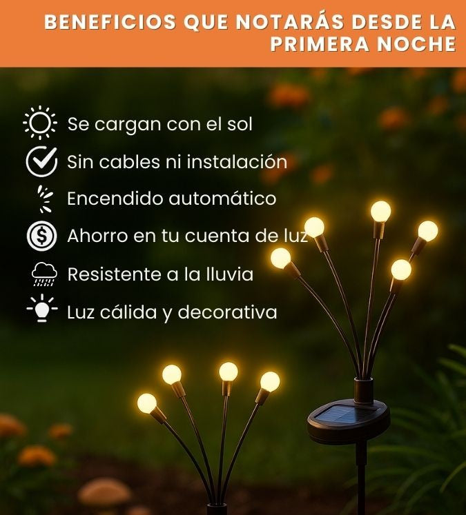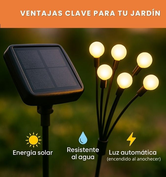 Pack x2 estacas, cada una con 6 LEDs y panel solar integrado.